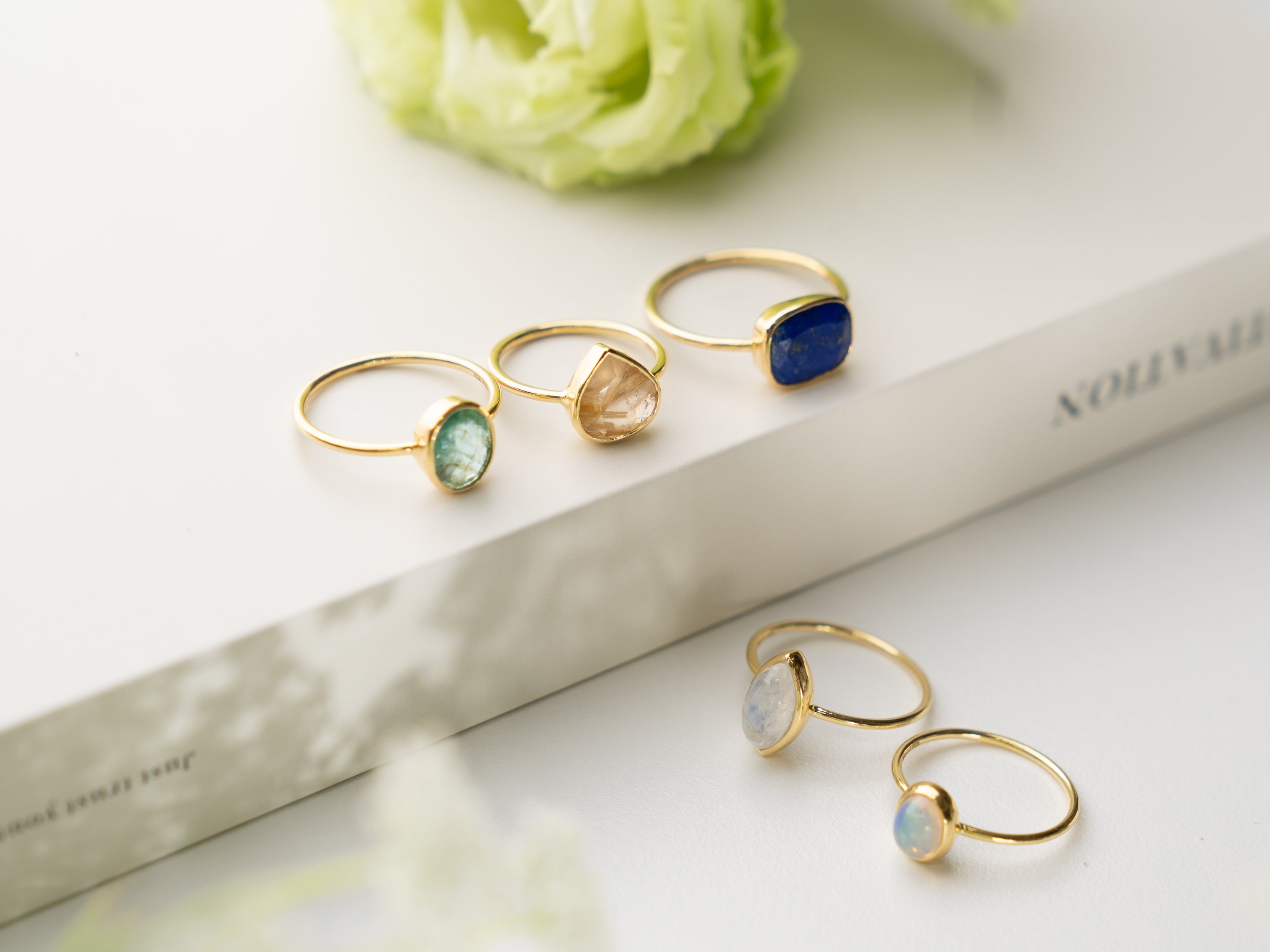ファッショナブルであり、日常に溶け込むような身近に感じられるデザインのジュエリーを天然石を用いて表現します。