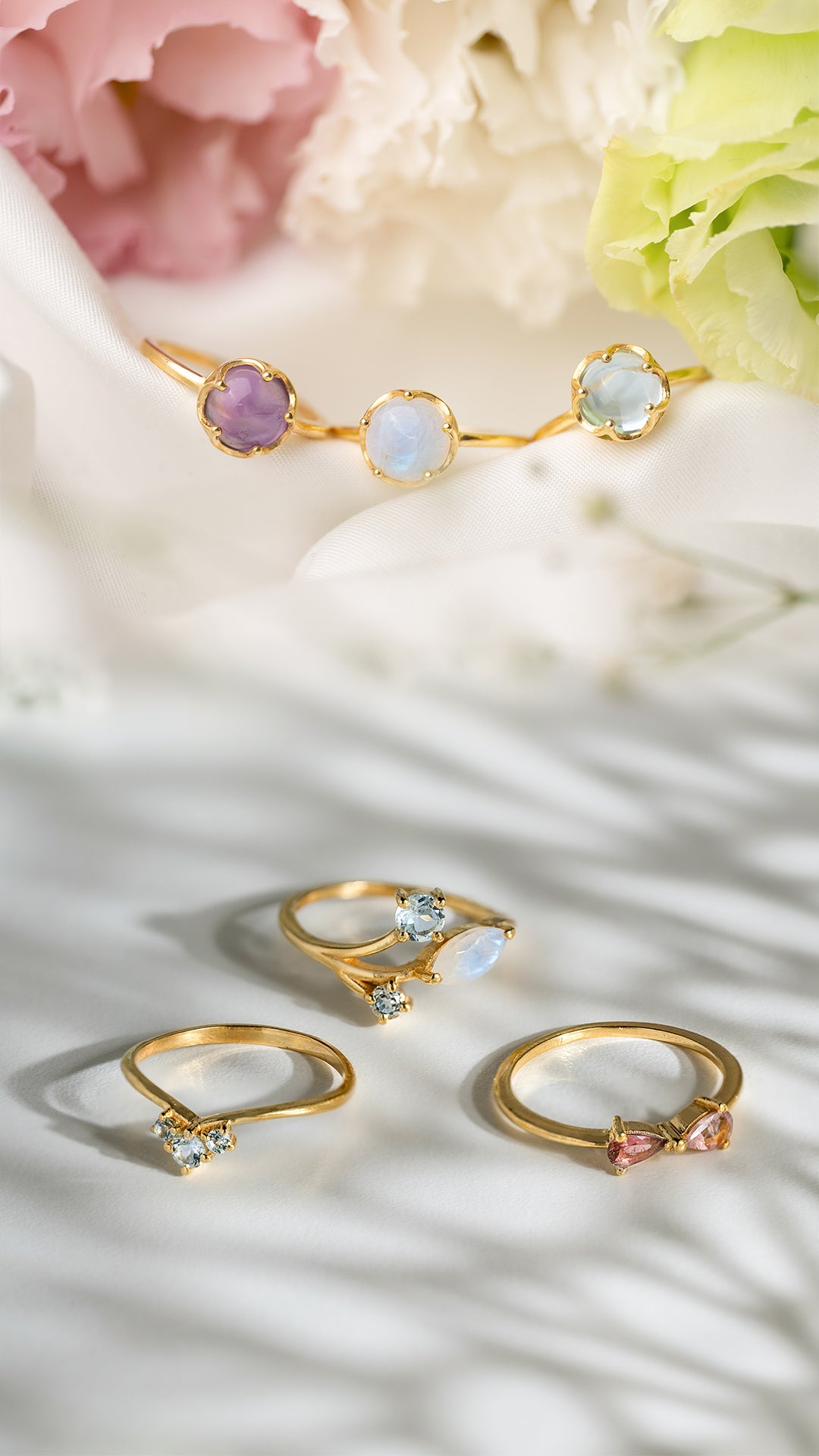 日々の生活の中で、お花を飾ったときのように心が癒されたり、小さな幸せを感じられるようなジュエリーをお届けします。
